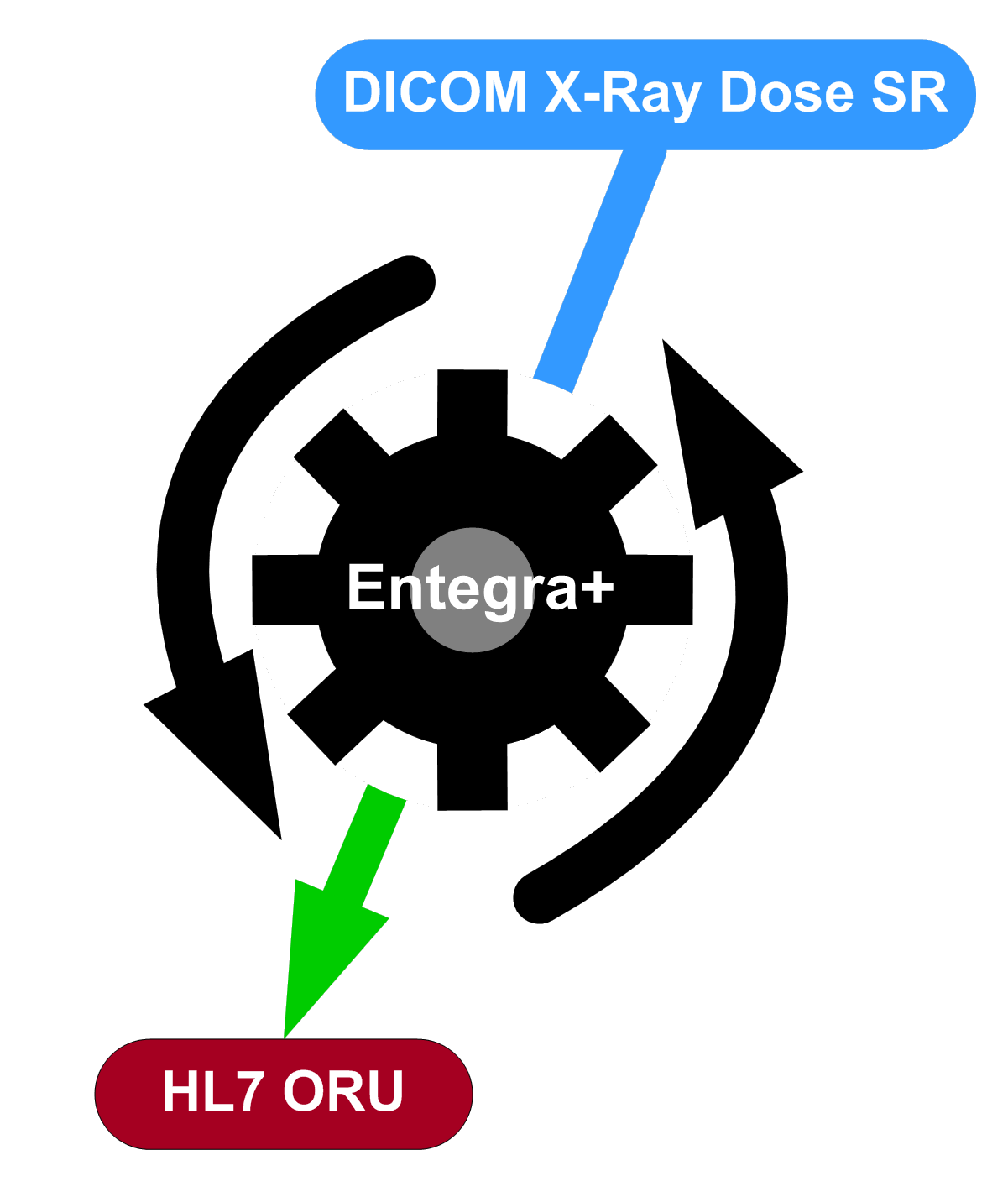 For example, you can build a dose management interface that receives DICOM X-ray radiation dose structured reports from modalities and converts them to HL7 ORU messages for transmission to a dose management system.